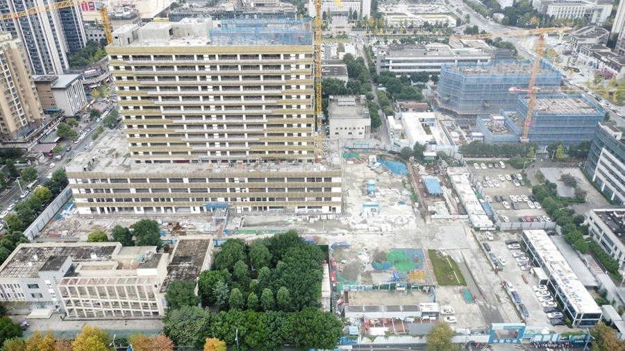該項目位于崇州市永康東路崇州市人民醫院內,主要由新建第二住院大樓、地下停車場、發熱門診、總平及其他工程組成。項目建成后,將新增床位380床,新增地下停車位679個,地上停車位118個,為轄區居民提供更加溫馨舒適、方便快捷的醫療服務,有力提升崇州市衛生健康服務水平。自項目啟動以來,項目部以打造優質工程為核心目標,面對時間緊、任務重、場地條件受限等客觀困難,始終堅持高標準、嚴要求,通過建立完善的質量管理體系,推廣應用建筑業十項新技術10大項32小項,強化全過程精細化管理,克服了施工中的砌體柔性連接施工、大體積混凝土裂縫控制、預制柱灌漿質量控制等諸多技術難點,確保了工程結構的安全與優質,贏得了驗收專家組的一致好評。